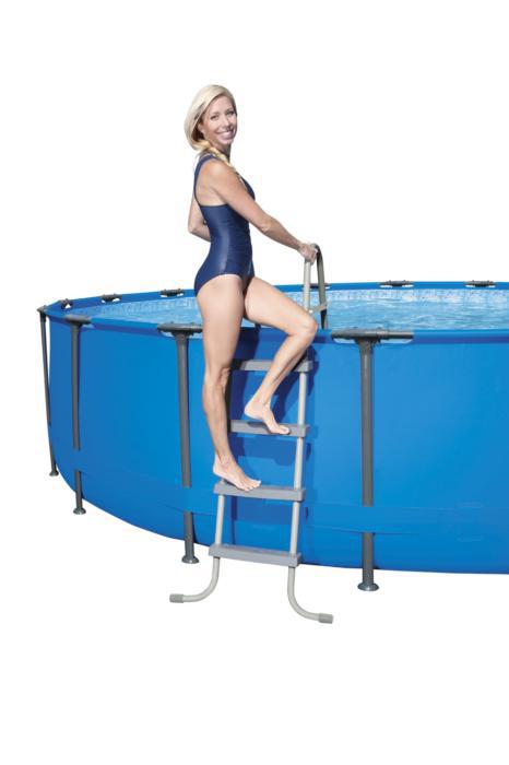 Каркасный бассейн Bestway 5614S отличается высокой прочностью и устойчивостью. Чаша выполнена из высококачественного трёхслойного ПВХ: два слоя плотного винила и один - полиэстер для особой прочности. Каркас металлический нержавеющий оцинкованный.