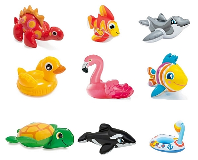 Девять разнообразных надувных игрушек, полюбятся Вашему ребенку с первой минуты знакомства. Купание сигрушками Интекс станет увлекательным и веселым.
