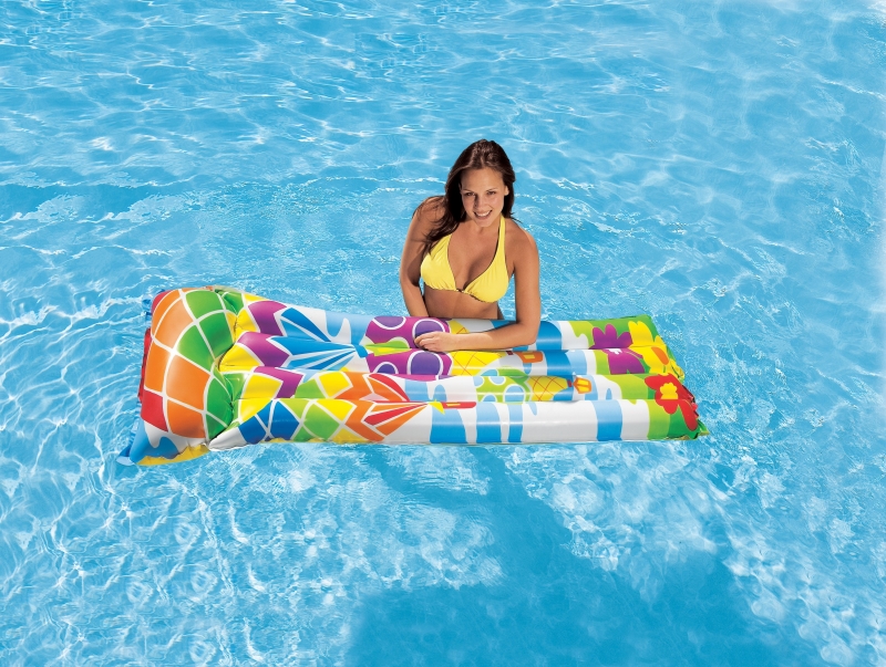 Пляжный надувной матрас "Люкс" Intex 58715 для плавания имеет удобный подголовник, две секции. Толщина плёнки 0,20 мм