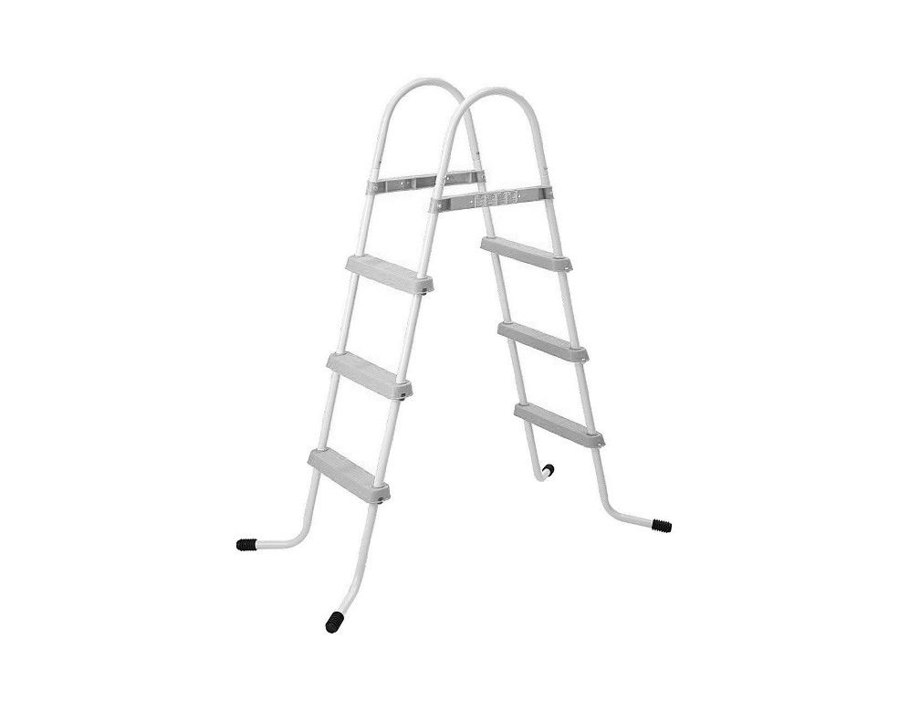 Лестница для бассейна Intex - 28057 107 см — прочная конструкция, изготовленная из оцинкованной стали и прочного пластика. Лестница довольно просто устанавливается и при этом не касается бортиков бассейна, благодаря широкому углу между сторонами. Высокие поручни обеспечивают безопасность во время использования лестницы и предохраняют от падения.