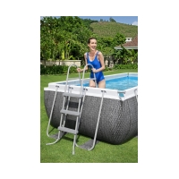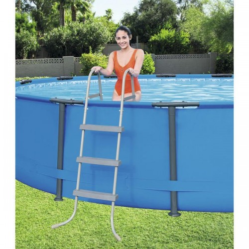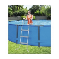 Лестница для сборных бассейнов модели 58335 от производителя Bestway. Каркас лестницы изготовлен из металла с антикоррозийным покрытием, а ступени из противоскользящего пластика.