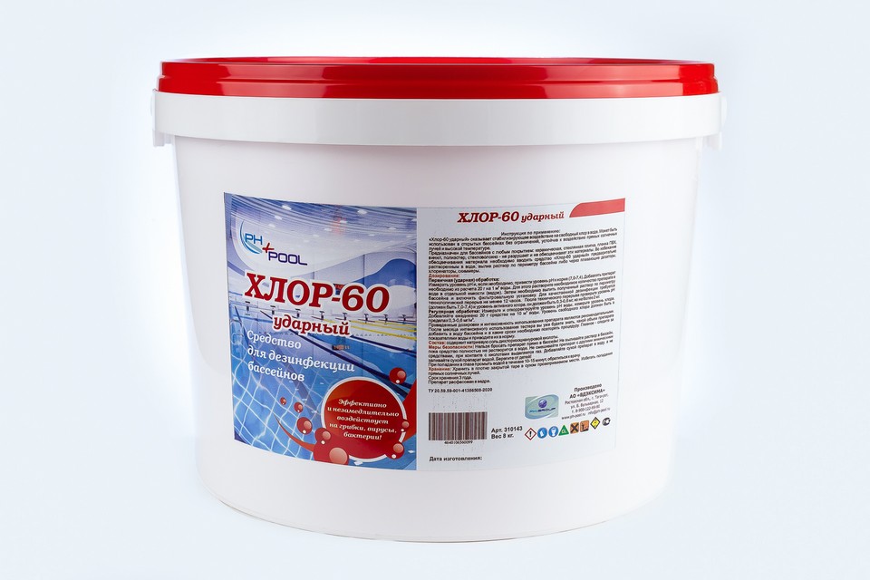Гранулированный быстрорастворимый препарат белого цвета для ударной дезинфекции воды. Содержит не менее 56% хлора. Расфасован в ведра.