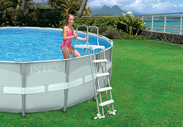 Лестница для бассейна 122 см Легко собирается Съемные ступени Изготовлена из стали с влагозащищенным покрытием Ступеньки сделаны из усиленного ABS пластика Стойки лестницы имеют специальные наконечники, защищающие дно бассейна от повреждения |