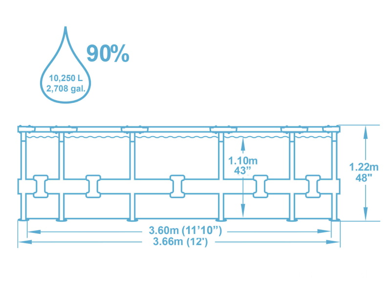 - Объём бассейна (90%): 10250 л