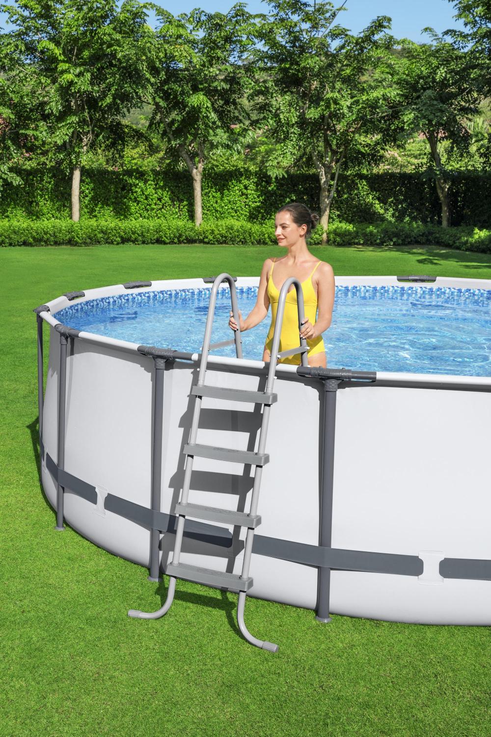 Каркасный бассейн Bestway 56420 отличается высокой прочностью и устойчивостью. Чаша выполнена из высококачественного трехслойного ПВХ: два слоя плотного винила и между ними сетка из полиэстера для особой прочности. Цвет чаши бассейна снаружи светло-серый, внутренняя поверхность имеет расцветку под мозаику. Каркас металлический, покрытый предотвращающим появление коррозии слоем пластика.