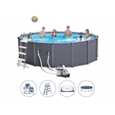 56886 BestWay Каркасный бассейн Power Steel 549x132см "Камень" 26000л, фил.-нас. 5678л/ч, лестн., тент, попл.-доз.