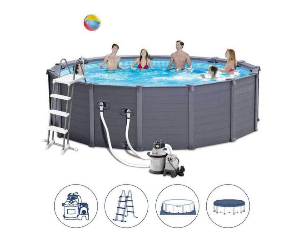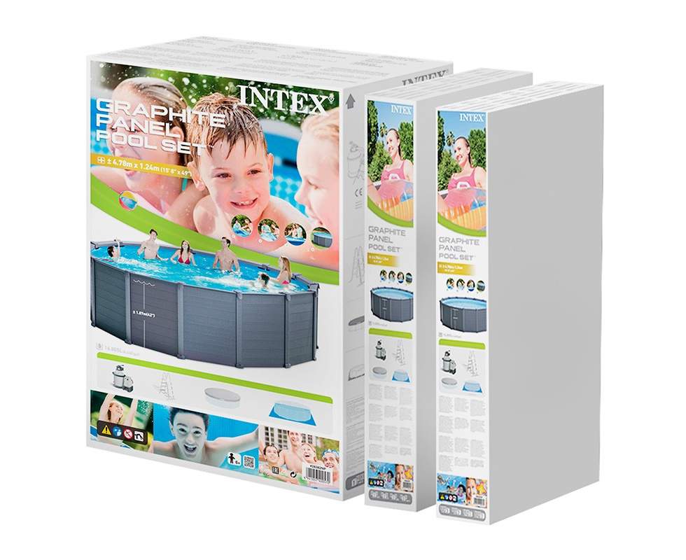 26384 intex Каркасный бассейн 478х124 см Graphite Gray Panel Pool полный комплект
