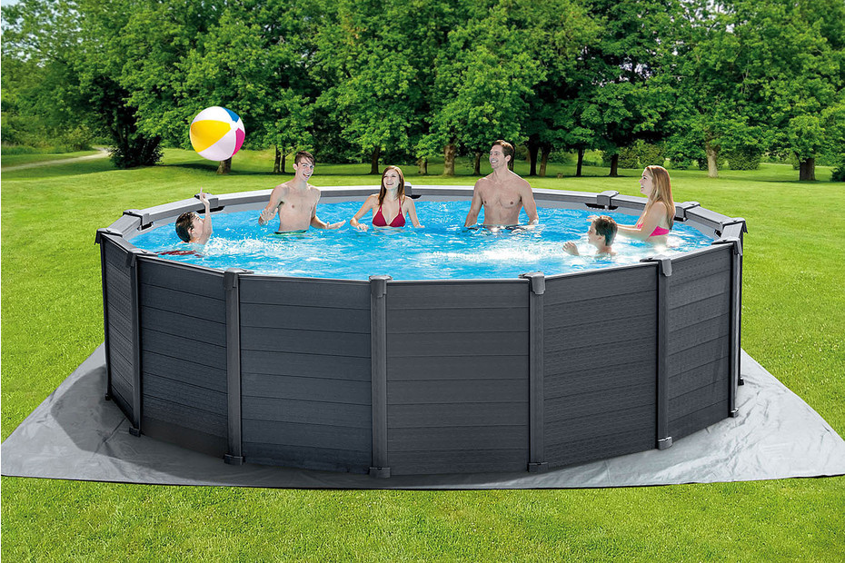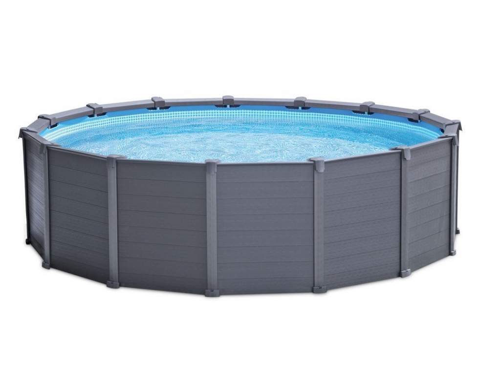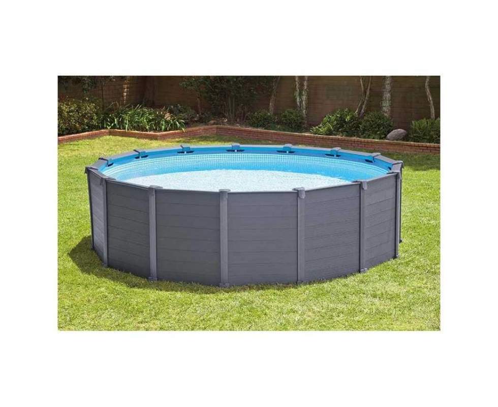 Сборный бассейн Intex "Graphite Gray Panel Pool" Декоративный вид панелей придает бассейну изысканный вид, дополнительную устойчивость. являются эволюционным шагом в производстве каркасных бассейнов- каркас более усиленный а сборка стала еще проще тем самым бассейны серий Graphite Gray Panel Pool стали надежнее. Легко и быстро устанавливается, не требуя специальной подготовки грунта. Время сборки займет всего 120 минут. Размерная линейка бассейнов Intex включает в себя бассейны от 305см и достигают 732 метров. Круглая форма бассейна позволяет более максимально использовать рабочее пространство в бассейне, в отличии от прямоугольных бассейнов. Дно и стенки бассейна изготовлены из прочного материала, по технологии Super-Tough. Они состоят из двух слоёв прочного ПВХ (850гр\м2) – стойкого к протиранию, ударам, царапинам и воздействию солнечного света, и одного внутреннего слоя из полиэстера – способствующего укреплению стенок бассейна.