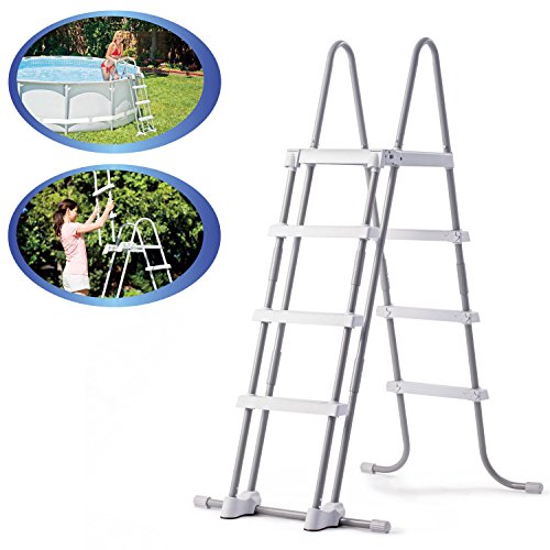 Лестница для бассейна 122 см Легко собирается Съемные ступени Изготовлена из стали с влагозащищенным покрытием Ступеньки сделаны из усиленного ABS пластика Стойки лестницы имеют специальные наконечники, защищающие дно бассейна от повреждения |