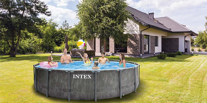 • Каркасный бассейн INTEX Prism Frame Grey Wood Premium