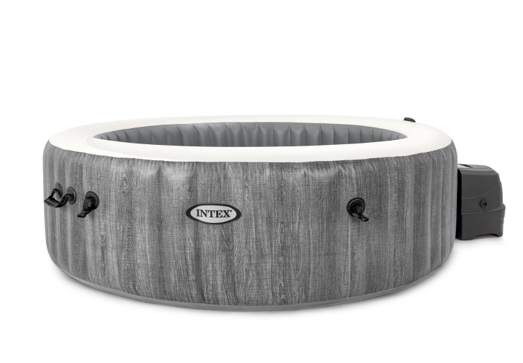 Надувная гидромассажная ванна Intex 28442, диаметр 216 см с тепловым насосом и водоподготовкой, удобная и стильная, идеально подходит для отдыха на территории дачного участка.