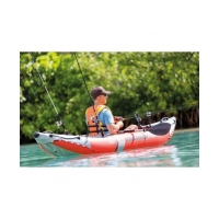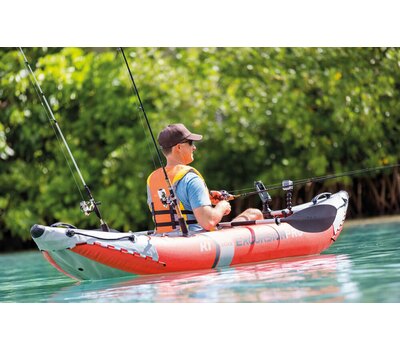 Надувная одноместная лодка-байдарка Excursion PRO, грузоподъемностью до 100 кг, изготовлена из высокотехнологичного трехслойного материала "Super Tough", состоящего из двух слоев особо прочного винила, между которыми проложена специальная сетка из полиэстера. Этот материал не боится воздействия агрессивной среды: бензина, машинного масла, соленой воды. Он устойчив к перепадам температур и воздействию солнечных лучей. Толщина "Super Tough" составляет 0,75 мм. Эта байдарка предназначена для озер и спокойных рек. Обтекаемая форма корпуса способствует легкому скольжению, яркая расцветка делает байдарку заметной на воде, обеспечивая безопасность, а надувной пол дает дополнительный комфорт и маневренность. Корпус лодки формируют две независимые воздушные камеры со специально разработанными клапанами для быстрого накачивания и спуска воздуха. Надувной пол имеет конструкцию Wave Beam: внутренние вертикальные виниловые перегородки идут параллельно бортам лодки, образуя продольные воздушные каналы, из-за которых поверхность пола выглядит волнистой. Надувной пол этой конструкции надежен, удобен и создает дополнительный комфорт пассажирам. Также лодка оборудована двумя съемными скегами для оптимальной маневренности на глубокой воде и мелководье, встроенной в пол регулируемой подставкой для ног и съемным кронштейном для дополнительных аксессуаров, таких как GPS-системы, эхолоты, поворотные держатели для удочек и т.д. На бортах расположено 2 встроенных крепления для удочек. В носовой и кормовой частях продуманы отделения для хранения вещей и снаряжения с нержавеющими стальными креплениями для обвязки. Удобство швартовки и буксирования обеспечивают внешние лееры и пластиковые ручки, находящиеся в носовой и кормовой частях байдарки. В комплект входят: ручной насос двойного действия High-Output Pump (арт. 68605), надувающий при движении поршня в обоих направлениях, легкое алюминиевое весло длиной 218 см, удобное регулируемое по высоте надувное сидение со спинкой, сумка для хранения и транспортировки и ремнабор.
